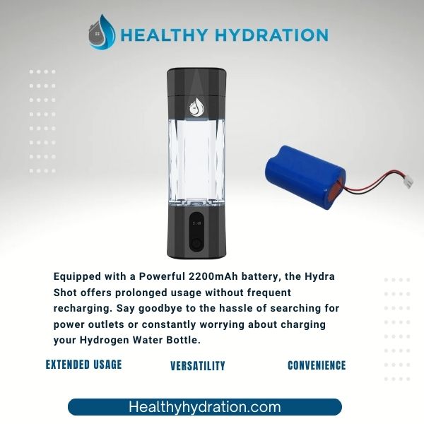 Experience the power of enhanced hydration with the Hydra Shot Hydrogen Water Bottle. Unlike standard bottles on the market, which often feature a modest 800-2000mAh, the Hydra Shot comes equipped with an impressive 2200mAh. That means better performance, longer usage, and a superior hydrogen production system that sets it apart.
